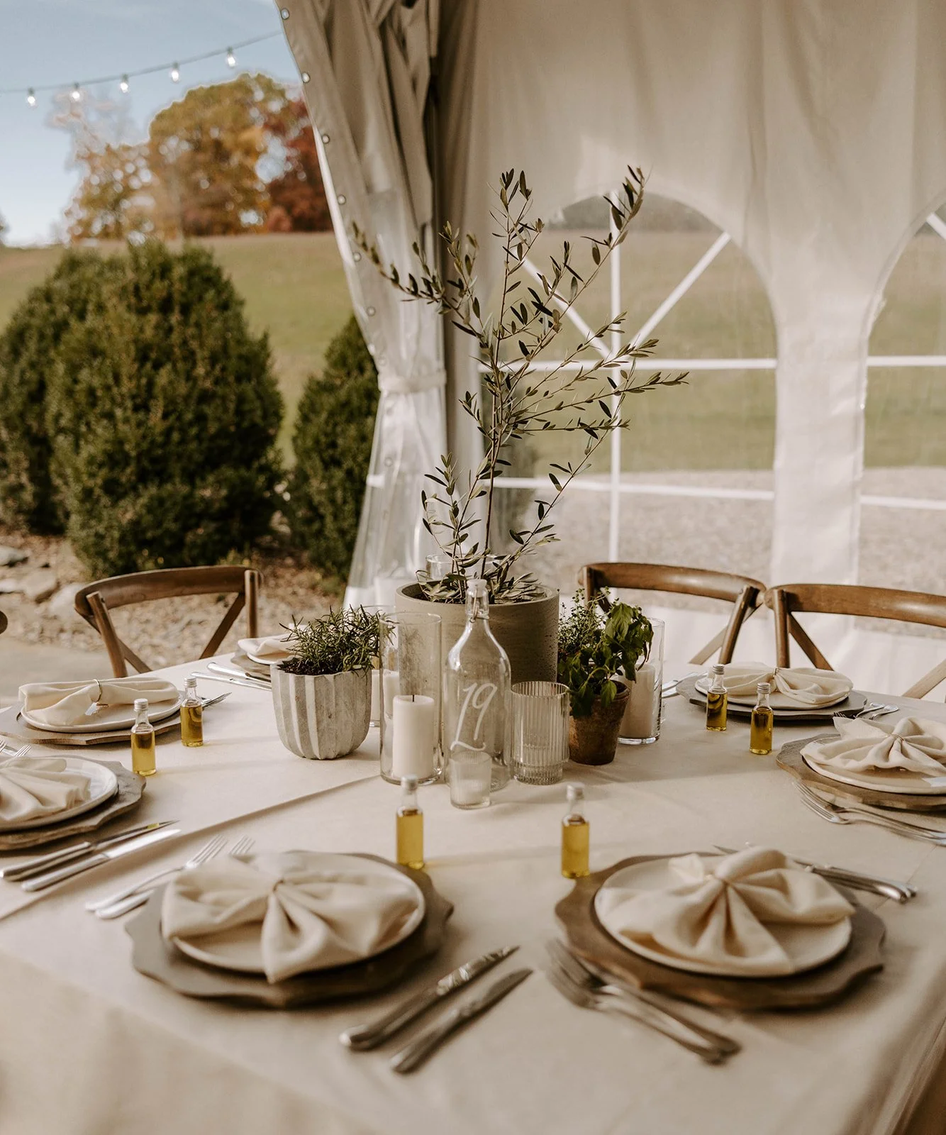 *Need the decor but no space for seating? We have you covered! Although we encourage the look and sustainability of utilizing our ceramic dinnerware, we are happy to provide eco-friendly disposable bamboo plates, napkins, and flatware to allow more flexibility for your event, without sacrificing style. Message us for pricing and availability.